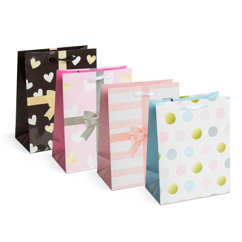 A praktikus ajándéktasak megoldás a csomagolási problémákra. Fényes kartonpapírból készült dekoratív ajádéktáska.