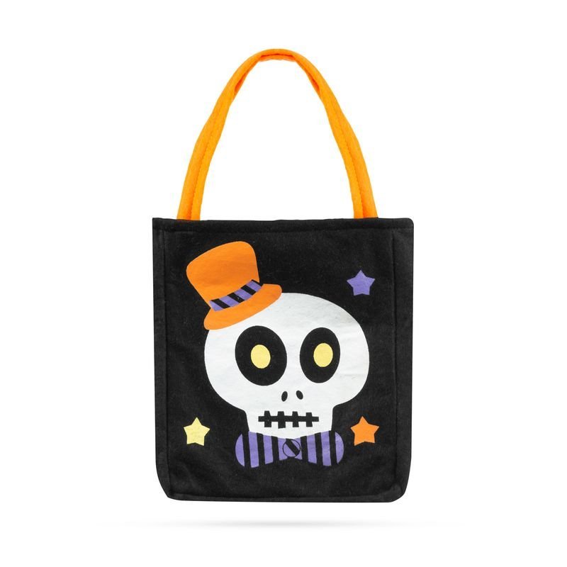 Ajándékozz stílusosan! Halloween témájú, puha, szövet ajándéktáska, koponya mintával az elején. Ideális lehet kisebb ajándékok átadására.