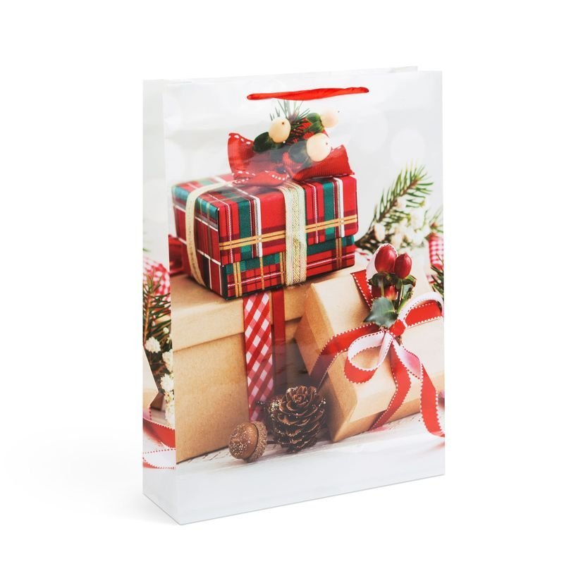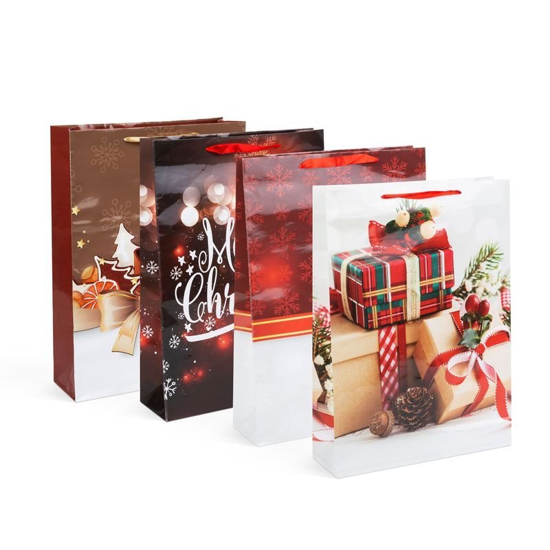 A praktikus ajándéktasak megoldás a csomagolási problémákra. Fényes kartonpapírból készült dekoratív ajádéktáska.