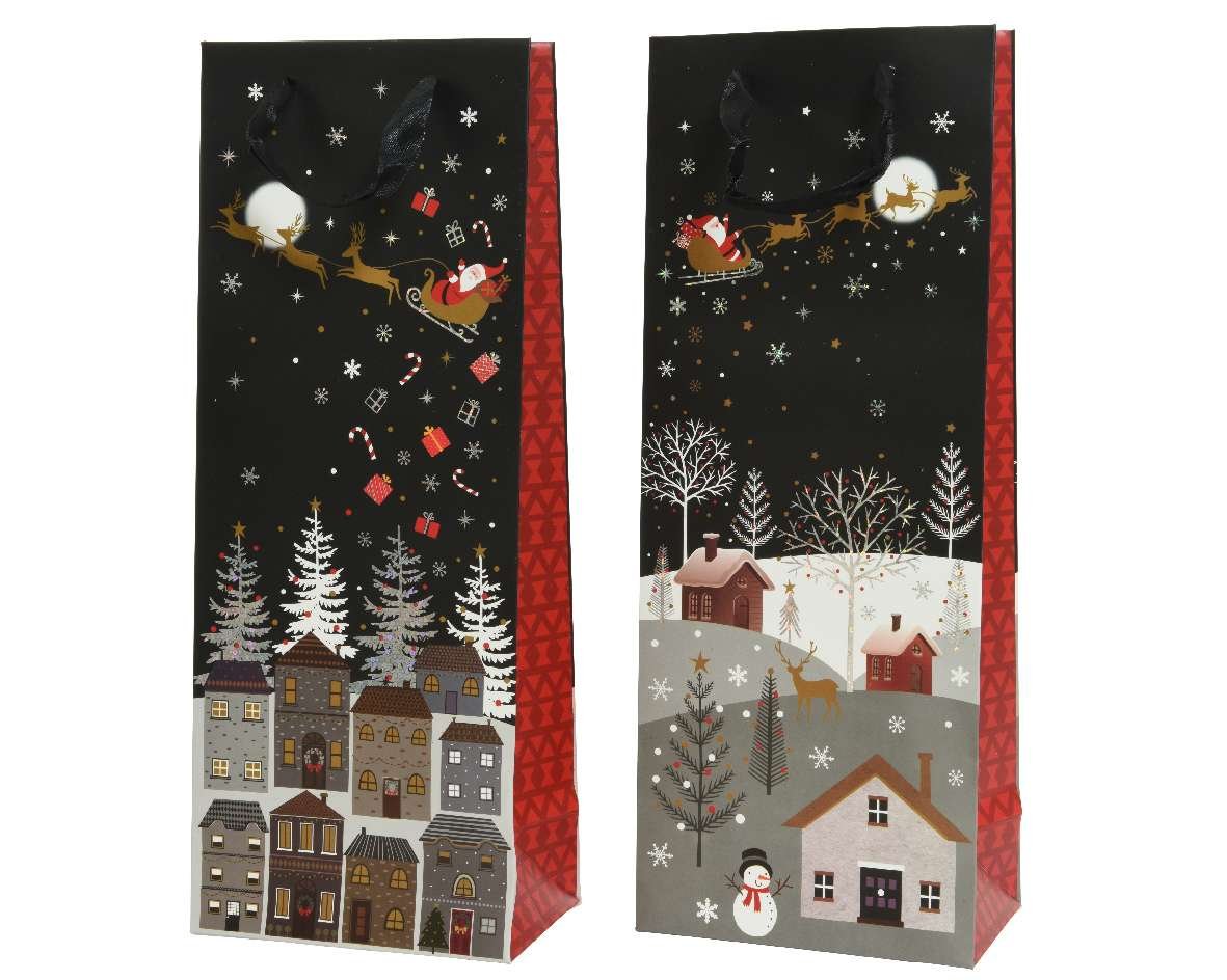 Karácsonyi italos ajándéktasak havas falu